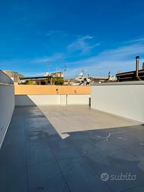 In zona centralissima, precisamente alle spalle della ''Villa Comunale'', proponiamo in vendita un appartamento di mq 100 circa, sviluppantesi su due livelli, completamente ristrutturato. L' appartamento sito al primo piano, è stato completamente ristrutturato ed è munito di impianto caldo/freddo a pavimento, pompa di calore e infissi di ultima generazione. Al primo livello troviamo un ampio disimpegno all' ingresso, camera da letto matrimoniale con bagno in camera e un vano lavanderia. Tramite un ascensore interno di proprietà, accediamo al livello superiore, dove abbiamo un ampia zona giorno, un bagno di servizio con disimpegno. La zona giorno dispone di un fantastico terrazzo di circa 70 mq.