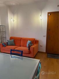 -Luminoso soggiorno con cucina a vista e accesso al primo balcone.