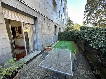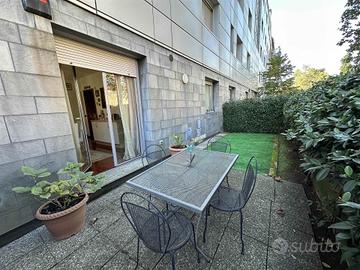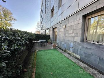 VIA GADOLINI - in signorile condominio di recente costruzione vendesi BILOCALE dalle ottime finiture completamente ARREDATO posto al piano terra con AREA ESTERNA DI PROPRIETA'. L'appartamento è composto da soggiorno con angolo cottura ed accesso diretto all'area esterna, disimpegno con zona caldaia e lavatrice, camera da letto matrimoniale ed ampio bagno. Completano la proprietà un cantina ed un ampia e comoda autorimessa al piano interrato. L'unità è subito disponibile. Da vedere. Eu.. 158.000