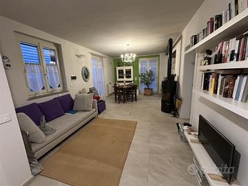 GROPPARELLO - CASA INDIPENDENTE libera su 3 lati con giardino e grande terrazza. L'abitazione è si sviluppa su due livelli. Al piano rialzato troviamo un ampio soggiorno, la cucina separata da cui si accede alla terrazza, 1 camera da letto e il bagno; al primo piano un soggiorno, con angolo cottura, 2 camere da letto, bagno e balcone. Al piano terra l'autorimessa, due locali deposito e un bagno di servizio e al piano interrato due vani cantina. La casa è stata recentemente ristrutturata con particolare cura dei dettagli e delle finiture. Richiesta Eu. 185.000