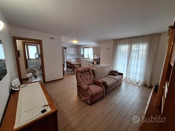In zona prossima al centro, vicinanza area scolastica, vendesi a Maniago bell'appartamento di recente costruzione ricadente in classe "A", tecnologia di ultima generazione. L'appartamento sito al piano rialzato di una palazzina di 7 unità immobiliari è formato da un ampio soggiorno-cucina con accesso su una terrazza coperta ed abitabile, un armadio a muro, disimpegno, bagno-lavanderia, bagno con doccia, due camere matrimoniali. Ampio garage e cantina al piano scantinato al quale si accede da un ingresso carraio automatizzato mediante comoda rampa. Secondo posto auto interno di proprietà. Occasione