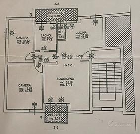 Al terzo e ultimo piano si trova questo appartamento di 75 mq, composto da ingresso su zona giorno, con angolo cottura e soggiorno, separata dalla zona notte con camera matrimoniale, cameretta e bagno.