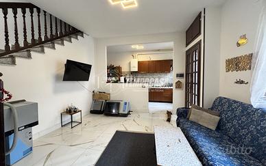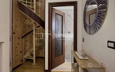L'abitazione si sviluppa a partire da un accogliente ingresso che immette direttamente nella zona giorno, spaziosa e luminosa, impreziosita dalla presenza di un camino. La cucina, a vista e ben integrata nello spazio living, è affiancata da una comoda zona lavanderia riservata e funzionale. Attraverso una scala interna si accede al piano superiore, dove si sviluppa la zona notte, composta da due camere da letto comunicanti mediante un ampio balconcino con affaccio sulla via principale, e da un primo bagno dotato di box doccia. Ulteriore valore aggiunto è rappresentato dal piano mansardato, raggiungibile tramite scala a chiocciola, dove trova spazio una versatile stanza hobby, ideale come studio o ambiente ricreativo, servita da un secondo bagno anch'esso completo di box doccia, e da un terrazzino che conferisce ulteriore respiro e luminosità agli spazi. Completano la soluzione il pavimento in grés porcellanato effetto marmo, infissi in PVC effetto legno con doppio vetro e il riscaldamento autonomo a radiatori.