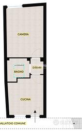 L'immobile, inserito in un contesto di corte e privo di oneri comuni, si colloca al primo piano e si raggiunge attraverso una scala comoda adiacente al ballatoio condiviso. L'ingresso si apre su una cucina abitabile funzionale, perfettamente integrata con un angolo soggiorno che restituisce un'atmosfera intima e ben organizzata.