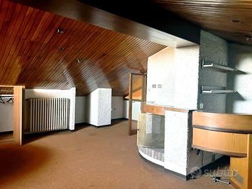 OSPIZIO Appartamento su due livelli, al terzo - quarto ed ultimo piano di una piccola palazzina in mattoni faccia a vista, servita da ascensore, ed edificata negli anni 80, così composto: un ingresso, una cucina ABITABILE, un salone, entrambe con balcone, due bagni, e due camere matrimoniali, la scala interna di collegamento raggiunge il piano superiore sottotetto, adibita a mansarda con un caratteristico camino e altro bagno. Al piano terra ampia autorimessa di oltre 30 mq. Possibilità di acquistare l' immobile ristrutturato. € 229.000