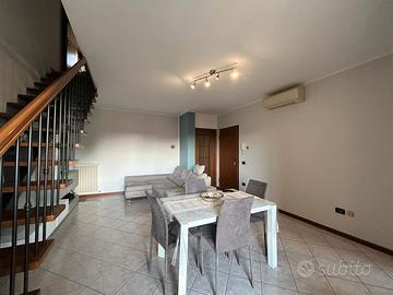 Rif. 5230 SESSO In piccola palazzina di recente costruzione, maisonette su due livelli, al secondo e ultimo piano, così composta: ingresso, sala, cucinotto separato e attrezzato, ampia loggia, camera matrimoniale e bagno con doccia, al piano superiore locale uso camera e locale uso bagno/lavanderia. Cantina e garage di pertinenza. Riscaldamento autonomo, zanzariere, aria condizionata, ecc. Euro 189.000