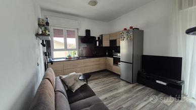 In palazzina da sei unità, appartamento ristrutturato al terzo e ultimo piano, senza ascensore, così composto: ingresso, soggiorno con angolo cottura, balcone, corridoio, camera matrimoniale, bagno con doccia e cameretta. Completo di cantina e garage al piano terra. € 165.000