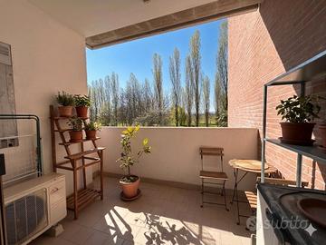 Rif. 5403 Roncocesi In piccola palazzina faccia a vista di recente costruzione, servita da ascensore, appartamento al primo piano così composto: ingresso, soggiorno con angolo cottura, ampia loggia con affaccio sul parco, camera matrimoniale con loggia e bagno con doccia. Riscaldamento autonomo, spese condominiali contenute. Aria condizionata, zanzariere, caldaia esterna. TUTTO ARREDATO. Libero subito! € 122.000