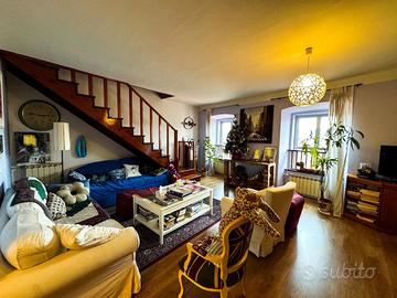 Piano superiore mansardato composto da due camere con bagno. Tre ripostigli. Riscaldamento autonomo.
