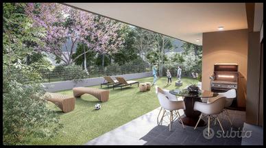 APPARTAMENTO AL PIANO TERRA DI BUONE DIMENSIONI SUL PALAZZINA DI POCHE UNITA' , BUONA ZONA GIORNO , 3 CAMERE , 2 BAGNI GARAGE E PORTICATO DI 30MQ AMPIO GIARDINO SU 2 LATI COLLEGATO CON UN PORTICATO POSTO AUTO ESTERNO PRIVATO . FINITURE DI QUALITA' CON IMPIANTI DI ULTIMA GENERAZIONE .