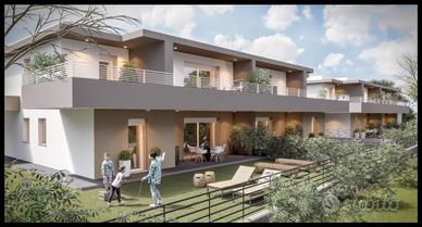 Dispone delle seguenti caratteristiche : impianto fotovoltaico , pompa di calore , esposizione su 3 lati , porta blindata , infissi in PVC con triplo vetro e tapparelle elettriche per ottimizzare il confort , predisposto per impianto di allarme e fibra ottica ,, tutti i servizi da raggiungere a piedi .