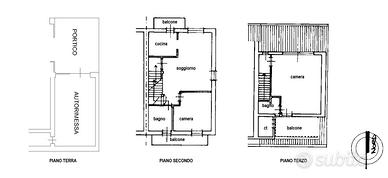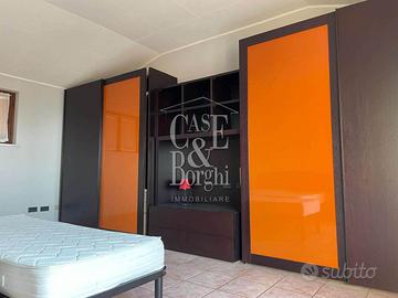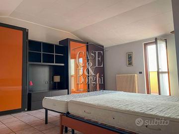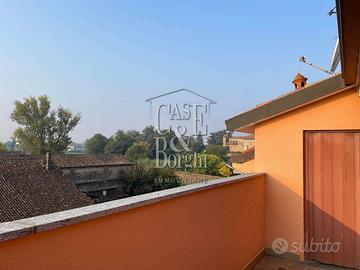L'ingresso avviene direttamente in soggiorno, un ambiente ampio e luminoso grazie alla doppia esposizione. Procedendo il cucinotto celato alla vista, comodamente sfruttabile e con accesso al balcone. Al piano troviamo ancora il primo bagno con vasca ed una camera da letto entrambi con affaccio sul secondo balcone. Salendo all'ultimo piano dal vano scala interno, accediamo alla mansarda che ospita la camera da letto matrimoniale con bagno en suit e terrazzo con vista sul cortile interno ed il panorama circostante.