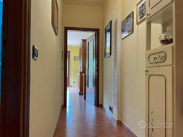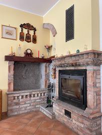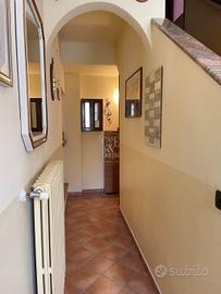 L'abitazione gode di due ingressi che conduco al piano terra, uno diretto in cucina uno nel disimpegno. Il piano di circa 100 mq è composto da ampia e luminosa cucina in muratura e con vista sulle colline, sala da pranzo con camino a legna canalizzato nella cucina e nel disimpegno del piano primo, soggiorno ed infine dal bagno.