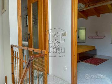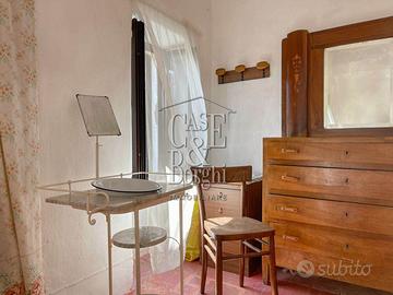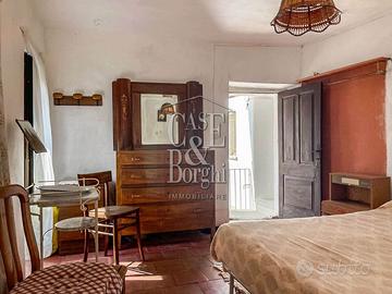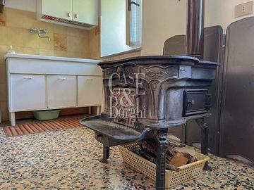 Al piano terra, ad accoglierci troviamo subito la cucina estiva, un ambiente semplice ed essenziale, perfetto per godersi l'accesso diretto alla corte ed il fresco durante l'estate. Sul retro poi, con ingresso separato, la cantina, utilizzata anche come piccolo locale di deposito. La scala esterna con inferriata poi, porta al piano primo dove troviamo soggiorno con angolo cottura e la classica stufa a legna in ghisa e la prima delle tre camere da letto. Al piano secondo infine, altre due camere ed il bagno con doccia.