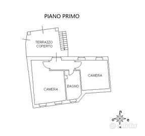 L'abitazione disposta su due livelli presenta al piano terra la cucina, il soggiorno ed infine il bagno; al piano superiore raggiungibile tramite scala esterna quindi al momento NON COMUNICANTE INTERNAMENTE troviamo due camere da letto, il bagno ed il terrazzo coperto.
