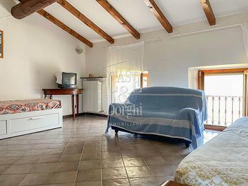 La generosa ampiezza dell'immobile ha portato alla suddivisione del fabbricato in 4 appartamenti (si precisa che catastalmente è un'unica abitazione); un bilocale al piano terra, 2 trilocali al piano primo ed infine un trilocale mansardato al piano secondo; ideale per chi cerca una soluzione multifamiliare o per chi desidera combinare residenza e attività recettiva.