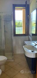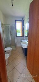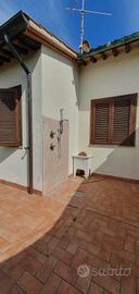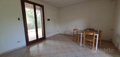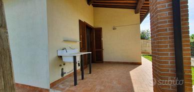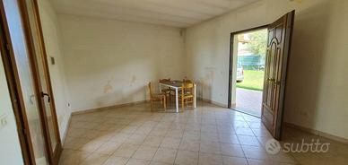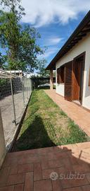 L'appartamento si sviluppa tutto su un piano con ingresso indipendente. 74 mq. Piano terra: uno spazioso soggiorno con lato cottura che da l'accesso ad un ampio porticato su due lati ed un giardino di 550 mq. il tutto recintato e chiuso con cancello. Sul porticato possiamo trovare una comodissima doccia esterna.