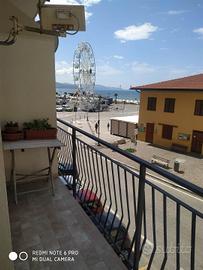 Il soggiorno è molto ampio, e dotato di porta finestra che si apre sul balcone con vista sul mare.