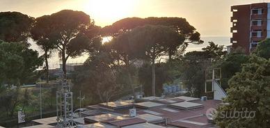 Soggiorno con terrazza vista mare su due lati, per poter godere la vista di splendidi tramonti sulla pineta e sul mare.