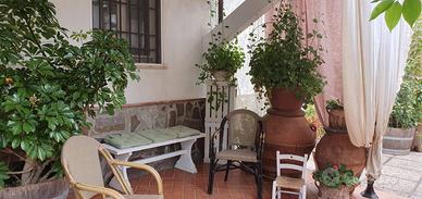 Ampio giardino di 100 mq. Per poter stare in totale relax fornito di arredi. Fanno parte del giardio due stanze (annessi)