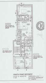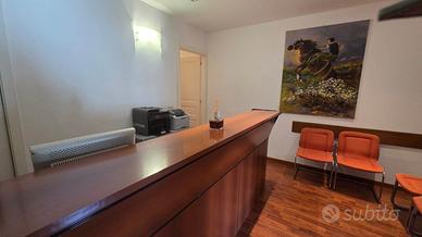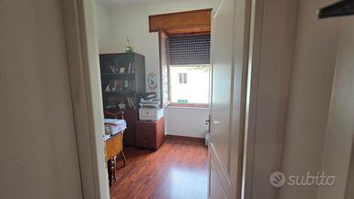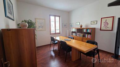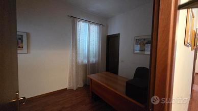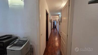 L'appartamento adesso è adibito a studio; ma con i suoi sei vani e doppi servizi, può offrire la possibilità di: appartamento con ampio salone, tre camere, due bagni e balcone.