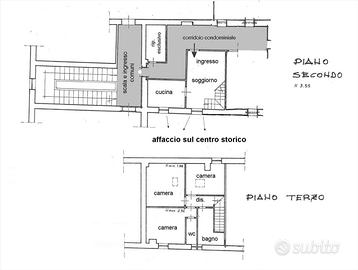 Al piano secondo dispone di ingresso/soggiorno con caminetto, cucina/pranzo e ripostiglio, al piano superiore (mansarda, con accesso da scala in legno dal soggiorno) dove dispone di 3 camere da letto e 2 bagni.