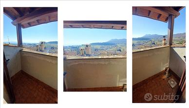 SARTEANO (SI), alla quota di 573 m s.l.m. ed a 6 km dal casello autostradaleA1 di Chiusi/Chianciano Terme, vendesi appartamento piano primo ed ultimo in fabbricato del centro storico. Vista panoramica molto aperta da tutte le finestre ! L'appartamento risulta luminoso e ristrutturato, presenta accesso da scala comune, ingresso/soggiorno con caminetto, cucinotto, camera, camerina, due bagni (uno con doccia ed uno con vasca). La superficie catastale misura mq 115. Dispone di una terrazzina panoramica a tasca sul tetto, oltre a lavanderia e ripostigli sottotetto. Proprio sopra ai due bagni dispone di una soffitta, accessibile da scala retrattile, dove sarebbe possibile realizzare un lucernario per i bagni. L'appartamento è stato ben conservato e mantenuto, incluso tetto, terrazza e facciata. L'immobile è dotato di impianto autonomo di riscaldamento a metano. Gli infissi esterni sono in legno, vetro doppio e persiane. La pavimentazione di tutto il piano risulta in ceramica monocottura. Richiesta Euro 85.000. (Classe Energetica: G e IPE: 378,65 Kwh/m2anno). Rif. AP602.