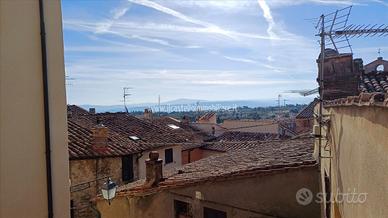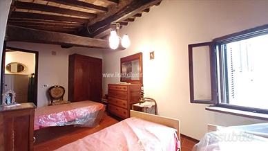 SARTEANO (SI), alla quota di 573 m s.l.m. ed a 6 km dal casello autostradale A1 di Chiusi/Chianciano Terme, vendesi appartamento con accesso indipendente ai piani terra e primo in centro storico. Scorci panoramici sui tetti e sul Monte Cetona. La superficie complessiva commerciale è di circa mq 110. L'appartamento (circa mq 100) dispone al piano terra di ingresso, soggiorno/pranzo con angolo cottura, disimpegno, camera, camerina/studio e bagno, al piano superiore (accesso da scala interna) dispone di una camera e bagno, al piano seminterrato (accesso da scala interna) dispone di una ampia ed alta cantina (circa mq 21) con accesso anche autonomo. L'immobile è stato ristrutturato negli anni '80 e si presenta in buono stato di conservazione generale, incluso il tetto. L'appartamento per il riscaldamento utilizza un termo-camino ad aria, con bocchette di areazione nelle stanze del piano terra e nella camera del primo piano. Le finestre sono in legno, con vetri semplici e zanzariere, persiane in alluminio. La pavimentazione risulta in cotto antico (solo nel soggiorno gres porcellanato finto cotto). Richiesta Euro 75.000 trattabili. Possibilità di acquistare anche un altro appartamento allo stesso piano di circa mq 108, ottenendo fra tutto 3 camere, 2 o 3 bagni e studio oltre a 2 cantine ed ampia zona giorno (vedi piante caricate sul sito internet). (Classe Energetica: G e IPE: 342,40 Kwh/m2anno). Rif. AP792.