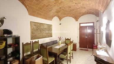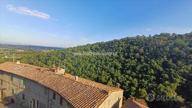 SINALUNGA (SI), loc Scrofiano, alla quota di 366 m s.l.m. ed a 11 km dal casello autostradale A1 di Valdichiana, vendesi appartamento in centro storico con accesso al piano terra ed affacci panoramici dal lato opposto (visto i dislivelli di cui è costituito il centro storico). Al piano sottostante le cantine. L'appartamento presenta una esposizione prevalente verso Sud ed è di comoda fruibilità, dato che si sviluppa su un solo livello. La superficie catastale dell'unità immobiliare è mq 175. L'appartamento (circa mq 140) dispone di ingresso/salotto, ampio soggiorno con caminetto, cucina, ripostiglio, due camere matrimoniali, bagno, ripostiglio/guardaroba e terrazza comune con unità immobiliare confinante. Dalla cucina si accede ad una scala che conduce al piano sottostante con ampie cantine (circa mq 40). Si presenta in buono stato di conservazione generale. L'appartamento è dotato di impianto autonomo di riscaldamento a metano. Le finestre sono in legno, con vetri semplici (una ha il vetro doppio). Persiane in pvc. La pavimentazione risulta in ceramica monocottura e parquet nelle camere. Richiesta Euro 107.000 trattabili. (Classe Energetica: G e IPE > 300 Kwh/m2anno). Rif. AP817.