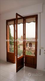 SINALUNGA (SI), loc Pieve Alta, a 6 km dal casello autostradale A1 di Valdichiana, vendesi appartamento al secondo piano in fabbricato condominiale con ascensore. Luminoso e con affacci panoramici dal balcone per una esposizione prevalente verso EST. La superficie complessiva commerciale dell'appartamento è di circa mq 123 (in considerazione di una superficie catastale dell'appartamento di mq 114 e dell'autorimessa di mq 18). Facile possibilità di parcheggio nei dintorni del fabbricato. L'appartamento dispone di ingresso, ampio soggiorno/pranzo, cucina/pranzo, balcone, disimpegno, ripostiglio, bagno con doccia (e possibilità di collocare una lavatrice), 3 camere. L'appartamento fa parte di un edificio (in cemento armato e tamponato a mattoni a faccia vista) che è stato costruito a fine anni '60 e nel tempo è stato ben conservato e mantenuto, si presenta in OTTIMO stato di conservazione generale. L'appartamento è dotato di impianto autonomo di riscaldamento a metano con caldaia in cucina, le finestre sono in legno, con vetri semplici le tapparelle avvolgibili sono in pvc. La pavimentazione di tutto il piano risulta in ceramica monocottura.