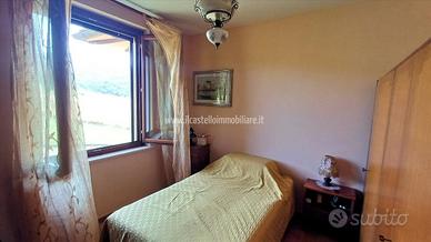 SARTEANO (SI), alla quota di 573 m s.l.m. ed a 6 km dal casello autostradale A1 di Chiusi/Chianciano Terme, vendesi appartamento al primo ed ultimo piano di un piccolo fabbricato condominiale con accessi e giardini esclusivi e ben disimpegnati. Vista aperta e con ottimi scorci panoramici sulla campagna circostante. L'appartamento risulta molto luminoso e gode di affacci su tre lati per una esposizione prevalente verso SUD/EST-SUD/OVEST. La superficie complessiva commerciale dell'immobile misura mq 156 circa (in considerazione delle superfici catastali dell'autorimessa pari a mq 36 e dell'appartamento pari a mq 138 incluso incidenza delle parti scoperte, solo l'appartamento mq 103). Il giardino ben curato e ricco anche di alberi pregiati, misura circa mq 1600 ed ha spazi comodi per manovre ed accesso carrabile con cancello motorizzato, inoltre è presente una cisterna interrato di 5000 litri per la raccolta dell'acqua piovana, da utilizzare per l'irrigazione. L'autorimessa ha accesso da rampa comune e dispone di scala interna di collegamento con il giardino esclusivo. L'appartamento, avente accesso da scala esterna privata (munita di sedia monta-scala) dispone di ingresso, ampio soggiorno-pranzo con angolo cottura, disimpegno, ripostiglio con lavatrice e caldaia, due camere, di cui un con bagno con doccia ed altro bagno con vasca. La soffitta (bassa) ha accesso da botola retrattile sul solaio del corridoio. L'appartamento fa parte di un immobile che è stato costruito a metà anni 2000 e nel tempo è stato ben conservato e mantenuto. Si presenta in ottimo stato di conservazione generale. L'appartamento è dotato di impianto di riscaldamento a pavimento, alimentato con caldaia a gpl a condensazione. Impianto TV singolo. Predisposizione di canna fumaria per caminetto nel reparto giorno. Portone blindato, finestre sono in legno, con vetri doppi e zanzariere, persiane in legno. La pavimentazione di tutto il piano risult