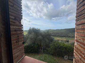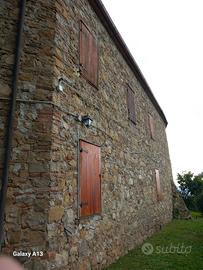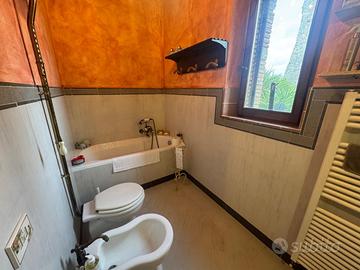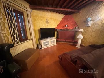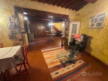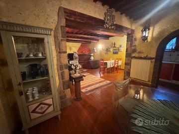 Al piano terra si accede nel'ampio salone con zona divani e sala pranzo con camino, cucinotto finestrato in muratura. Da una splendida scala si accede al piano superioire dove troviamo due camere matrimoniali e camerina, doppi servizi entrambi finestrati, uno con vasca e uno con la doccia. Classiche rifiniture con travi a vista, mezzane in cotto e infissi in castagno,che conferiscono all'immobile un fascino unico. Impianti elletrico e idralulico moderni. All'esterno troviamo parco condominiale accessibile esclusivamente ai residenti tutto molto curato e in perfette condizioni.