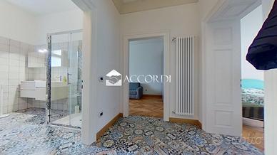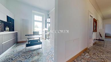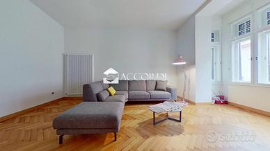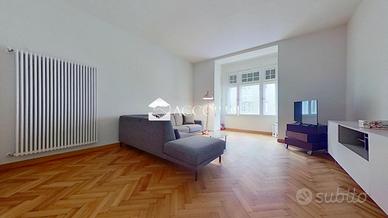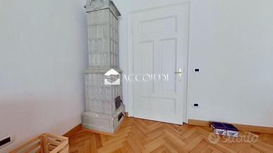 In zona storica di Merano (a traffico contenuto) ed in una palazzina realizzata nei primi anni del Novecento, è posizionato questo grande appartamento con la disponibilità di due garage limitrofi. La porzione storica è composta di sole 3 unità abitative e le spese condominiali sono praticamente nulle. L'abitazione è stata recentemente ristrutturata internamente, mantenendo inalterata la storicità architettonica delle sue parti essenziali che la contraddistinguono. Oltre a due garage, sono presenti una porzione di soffitta perfettamente fruibile ed una cantina al piano interrato, in piena proprietà ed identificati catastalmente, nonché due storiche stufe in maiolica.
