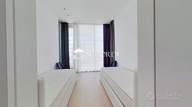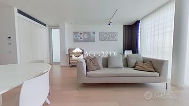 In prestigioso complesso immobiliare, caratterizzato da una progettazione molto accurata architettonicamente, posto sul fronte spiaggia...... c'è questo appartamento di recente costruzione, dalle metrature molto ampie nella zona giorno. Dalla terrazza potrai godere di una visuale molto ampia sul mare, oltre a poterci soggiornare/pranzare. L'appartamento risulta composto da: cucina e soggiorno molto ampi, camera matrimoniale con bagno padronale, camera doppia, bagno finestrato ed ampia terrazza, il tutto al quinto piano; garage al piano interrato. Può essere utilizzato tutto l'anno ed é servito da pompa di calore nonché ascensore panoramico. Il complesso è dotato di grande piscina privata... oppure di posto spiaggia.