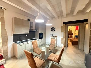 La seconda parte dell'immobile si sviluppa con una cucina-soggiorno arredata con gusto, una seconda camera da letto e un ulteriore bagno completo. Gli ambienti sono distribuiti in modo pratico e razionale, pronti per essere abitati o messi immediatamente a reddito.