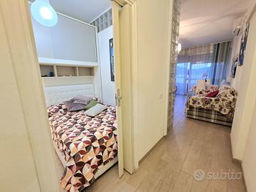 Affittasi carinissimo bilocale in zona Nuova a circa 150 metri dal mare, al secondo piano con ascensore. Immobile composto da ingresso, camera con letto da una piazza e mezzo, soggiorno con angolo cottura, divano letto da due posti e terrazza abitabile con vista mare. Bagno con doccia. Ristrutturato recentemente e interamente climatizzato. Posti letto 2+1/2