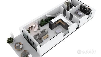 Le finiture sono di nuova costruzione, con riscaldamento a pavimento e impianto di climatizzazione per garantire il massimo comfort in ogni stagione. L'ingresso è indipendente, offrendo ulteriore privacy e autonomia.