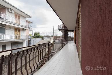 GS48 Nel comune di Aci Sant'Antonio, frazione di Santa Maria La Stella, si propone in vendita un appartamento, mq 96 interni oltre balconi, facente parte di una palazzina con sole tre unità abitative e depositi al piano cantinato. La palazzina trovasi all'interno di un'area opportunamente recintata, e si presenta in ottime condizione esterne. Esso è ubicato al piano terra (rispetto alla quota strada) ed è composto da: - ingresso/soggiorno; - corridoio; - bagni; - due camere da letto; - cucina abitabile; - balcone a giro. L'appartamento è provvisto di impianto elettrico, idrico e termico con piastre radianti a parete, utenze attualmente disattivate e da revisionare, alimentazione con gas metano. Necessita di interventi di ristrutturazione. Non vi è possibilità di garage e di posti auto all'interno della palazzina (aree libere di esclusiva pertinenza ad altra proprietà). Zona molto tranquilla, vicinissima al casello autostradale di Acireale, riservata e fornita di attività necessarie per i bisogni familiari giornalieri. Classe energetica: D ipe: 253.70 tel.: