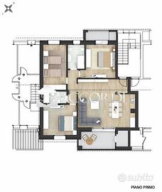 Il disimpegno centrale organizza il percorso interno, valorizzando la privacy e favorendo una fruizione ordinata e funzionale degli spazi. La presenza del locale tecnico-lavanderia aggiunge un ulteriore elemento di comodità, ideale per gestire al meglio le attività domestiche.