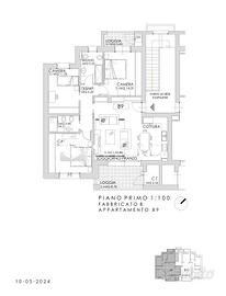 L'ingresso dell'abitazione conduce a un soggiorno-pranzo ampio e raffinato, caratterizzato da una distribuzione degli spazi che favorisce convivialità e comfort. La zona giorno, luminosa e ben proporzionata, si apre su una loggia coperta che diventa uno spazio esterno da vivere: un angolo ideale per momenti di relax, per una cena all'aria aperta o per accogliere gli ospiti in un ambiente protetto e piacevole. Accanto al living si sviluppa la cucina, organizzata con attenzione alla funzionalità e pensata per un utilizzo pratico e quotidiano.