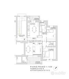 L'ingresso conduce a un soggiorno-pranzo ampio e ben definito, caratterizzato da una distribuzione equilibrata che valorizza luce, comfort e convivialità. La loggia esterna, collegata direttamente alla zona giorno, diventa uno spazio aggiuntivo perfetto per godere dell'aria aperta, leggere, cenare all'esterno o semplicemente ritagliarsi un momento di tranquillità. Accanto al living, la cucina si sviluppa in un ambiente dedicato, organizzato in modo funzionale e studiato per accompagnare con praticità la vita quotidiana.