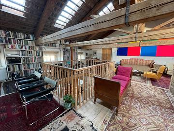 Questa porzione di casa in stile Liberty, costruita nel 1920, rappresenta un perfetto esempio di architettura storica che coniuga eleganza senza tempo e comfort moderno. La ristrutturazione ha preservato i dettagli originali mentre sono stati integrati impianti moderni per migliorare l'efficienza energetica. L'immobile è composto da DUE APPARTAMENTI CON INGRESSI INDIPENDENTI, ma facilmente unificabili per creare un'unica residenza di ampie dimensioni, mantenendo comunque la possibilità di avere zone private e autonome. Il primo appartamento è sviluppato su due piani. Al piano terra, un ingresso indipendente conduce alla cucina separata, alla sala da pranzo e al soggiorno, arricchito da un terrazzo abitabile; una scala in legno antico porta al piano superiore dove si trovano due ampie camere da letto con cabina armadio, due bagni finestrati e una zona studio. Un'area relax completa l'ambiente, riscaldato da una stufa che conferisce un'atmosfera accogliente. Il secondo appartamento invece, anch'esso con ingresso indipendente, è più compatto: troviamo un cucinino che si apre su un piccolo salotto/pranzo, la zona notte comprende una camera da letto, un bagno finestrato con vasca e una zona lavanderia. Scendendo al piano inferiore, si trova una seconda cucina con accesso a un piccolo spazio esterno, mentre un secondo bagno al piano mezzano completa l'unità. Le due unità, pur rispettando la privacy degli occupanti, possono essere facilmente collegate per creare un'unica grande residenza, offrendo spazi generosi e ben distribuiti, ideali per famiglie numerose o per chi cerca un ampio spazio domestico senza rinunciare alla possibilità di separare le aree private.