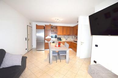 Zona giorno con angolo - cottura, disimpegno, due camere di cui una matrimoniale ed una singola, bagno con doccia e completo di lavella, ripostiglio con attacchi lavatrice.