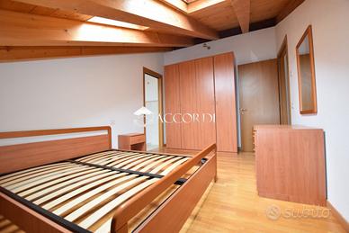 Appartamento dalle finiture piacevoli, con travatura a vista ed in vendita parzialmente arredato (cucina - camera) e climatizzato.