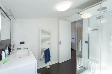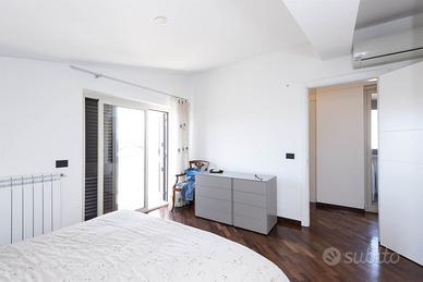 Piano Superiore (3° Piano Mansardato): Tramite una scala interna in legno Wengè si accede alla zona notte, caratterizzata da un caldo pavimento in parquet. Un corridoio disimpegna due ampie camere da letto e due bagni aggiuntivi