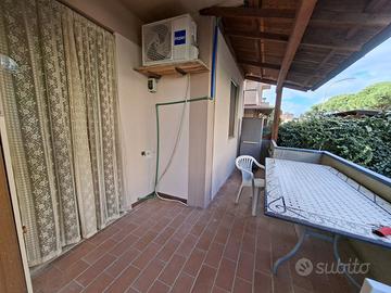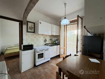 Vendesi piccolo trilocale a pochi passi dal mare, zona Salciaina, al piano terra rialzato con ampio giadino privato. L'immobile è composto da soggiorno attualmente trasformato in camera grande, cucina abitabile con accesso alla terrazza abitabile e al giardino, camera matrimoniale e bagno finestrato con la doccia. Posto auto privato nella corte. Tutte le altre informazioni in agenzia.
