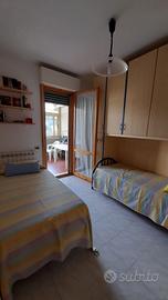 Si propone in vendita appartamento al piano terra con ampia corte esclusiva all'ingresso. Cosi composto: soggiorno con cucinotto, due camere , ripostiglio , giardino nella parte retro molto grande al quale si accede da una delle camere tramite un ampio terrazzo chiuso e condonato. Ampio bagno con vasca. Completa la proprietà garage di circa 19 mq e comoda cantina. Termosingolo e climatizzato.