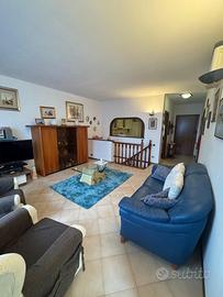 Si propone in vendita appartamento di circa 160 mq. al piano terra rialzato con ingresso indipendente. L'immobile è composto dall' ingresso, ampio salone con camino dal quale si accede alla terrazza abitabile con bellissima vista panoramica sulle colline e sul mare, cucina abitabile con accesso al giardino privato, due camere matrimoniali, camerina e doppi servizi. Al piano seminterrato taverna con ampio garage. Climatizzato e termosingolo,caldaia a condensazione, in ottime condizioni, vendesi arredato.