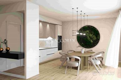 SM27D -- Comodo al centro e a tutti i servizi proponiamo in vendita un appartamento in residence di nuova costruzione di sole 6 unità abitative. La proprietà in oggetto si sviluppa al primo piano e si compone di un' ampia e luminosa zona giorno open space di 43 mq con accesso diretto alla spaziosa loggia esterna. Un disimpegno porta alla zona notte composta da una grande camera matrimoniale e due comode camere singole, un bagno con vasca finestrato e un bagno con doccia. Completano la proprietà una cantina e un garage nell'interrato.