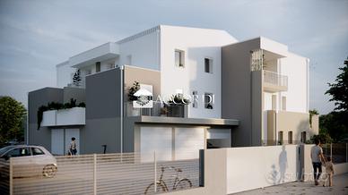 SM49A --- in zona tranquilla e a pochi passi da tutti i servizi, vendesi appartamento con giardino su complesso residenziale di nuova realizzazione. L'immobile è situato al piano terra ed è composto da ampio openspace con cucina semi indipendente, tre camere, due bagni e un comodo disimpegno. Dalla zona giorno si accede al portico e al giardino. Tra le dotazioni: riscaldamento a pavimento con pompa di calore, fotovoltaico, aria condizionata, tende oscuranti elettriche, sensori d'allarme, zanzariere. Completano la proposta garage chiuso e posto auto esterno. Classe A4. Consegna immobile fine 2026.